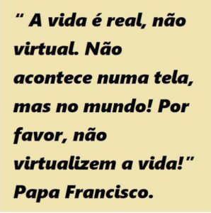 “A vida é real, não virtual. Não acontece numa tela, mas no mundo! Por favor, não virtualizem a vida!”