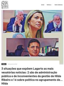 Na pauta do TRE/SE cassação E conclui AndersonsBlog: “E pra fechar a ruma de vexames, mais essa: está numa pauta do Tribunal Regional Eleitoral de Sergipe (TRE/SE) o julgamento da cassação dos mandatos da deputada estadual Áurea Ribeiro e do deputado federal Gustinho Ribeiro, ambos, mãe e filho, do Republicanos. E embora este AnderSonsBlog torça pra que ambos provem as suas respectivas inocências e se mantenham nos respectivos parlamentos, não deixa de ser chato, mas muito chato mesmo que Lagarto, mais uma vez, vire notícia negativa e motivo de chacota em todo o Sergipe. Até quando isso, meu Deus do céu? E embora também não seja essa terceira vergonha fruto direto da gestão de Hilda Ribeiro, não deixa de ser clara a ligação, afinal Gustinho é marido de Hilda e Áurea é sogra de Hilda. Aí é aquela coisa: ou essa turma de ajeita, se apruma, ou Lagarto será FINDA em breve, viu? E que ninguém tenha nenhuma dúvida disso. Terrível!”