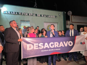 OAB/SE realiza ato de desagravo em Macambira contra vereador do município A Ordem dos Advogados do Brasil – Seccional Sergipe (OAB/SE) realizou na noite de quarta-feira, 19, o desgravo público em desfavor de um parlamentar do município de Macambira. O ato aconteceu em frente à Câmara de Vereadores do município e contou com a participação da advocacia e diretores da Ordem.