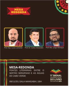 Semelhanças culturais A proposta da mesa é estabelecer um diálogo entre as produções literárias de Cabo Verde e do sertão sergipano, explorando as semelhanças culturais, históricas e simbólicas que aproximam esses dois territórios. A inspiração surgiu a partir do contato dos participantes com as escritoras cabo-verdianas Dina Salústio e Vera Duarte, cujas obras despertaram admiração e o reconhecimento de laços profundos entre as duas realidades. “Cabo Verde é uma verdadeira irmã do Brasil. Suas vozes femininas e sua literatura pulsante nos revelam uma África viva, sensível e profundamente ligada à nossa formação cultural”, destacou o professor e escritor Carlos Alexandre.