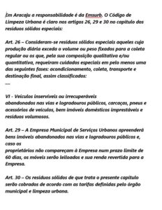 Em Aracaju, o blog vem pedindo a Prefeitura de Aracaju, através da SMTT e da Emsurb por conta do Código de limpeza Urbana que prevê o recolhimento dos veículos abandonados e a notificação dos seus respectivos donos.
