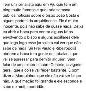 Misericórdia II O cidadão chamou um determinado jornalista de inocente ao dizer que o seu blog não sabe de quase nada dos bastidores da arquidiocese de Aracaju. E ainda disse que se abrir a boca vai feder pro lado de alguém. Misericórdia, parece que a coisa é mais grave do que se imaginava. Home, vôte, abra logo a boca.