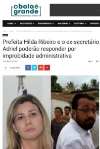 Lagarto: Prefeita Hilda Ribeiro e o ex-secretário Adriel poderão responder por improbidade administrativa Deu no “O Bolo é Grande”: O Ministério Público do Estado de Sergipe por intermédio da 1ª Promotoria de Justiça Cível de Lagarto, entrou com ação de improbidade administrativa contra a prefeita de Lagarto, Hilda Ribeiro, e o ex-secretário municipal de Planejamento, Adriel Alcântara, por ato de nepotismo. Segundo o MP, o ex-secretário nomeou vários parentes para cargos comissionados na Prefeitura de Lagarto, nomeações essas também atestadas pela prefeita Hilda Ribeiro. Nas apurações, foram apontados os seguintes parentes: Jessica Oliveira Alcântara, João Alcântara de Lisboa, Renata Naiara Costa Santos e Murilo Correia Alcântara. Renata Naiara, que também poderá responder por improbidade, recebia um substancial aumento na remuneração. Toda matéria com a documentação aqui: https://www.oboloegrande.com.br/prefeita-hilda-ribeiro-e-o-ex-secretario-adriel-poderao-responder-por-improbidade-administrativa/