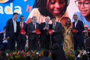 Educação sergipana é selo ouro O ministro Camilo Santana destacou o trabalho do Governo de Sergipe na redução do analfabetismo durante cerimônia de entrega do Selo Nacional Compromisso com a Alfabetização. O selo reconhece as ações dos gestores estaduais e municipais nas ações de alfabetização promovidas em 2025. Avanços na infraestrutura, na formação pedagógica e regime de colaboração dos municípios contribuíram para o avanço. Sergipe foi um dos 11 estados do Brasil que receberam o Selo Ouro, sendo um dos quatro do Nordeste contemplados. “O governador Fábio Mitidieri me contou que chamou a equipe, puxou as orelhas e Sergipe, de 2023 para cá, triplicou o índice de alfabetização, alcançado a meta. Esse é o esforço, uma vitória de cada prefeito, de cada secretário, de cada professor”, declarou o ministro.