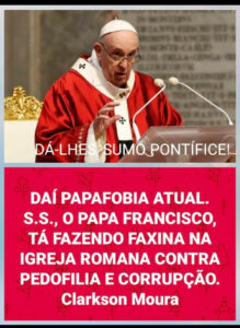 DE OPORTUNO, FAZ-SE INJUNTIVO E URGENTE QUE O MAIS ALTO MANDATÁRIO DA IGREJA CATÓLICA, S.S. FRANCISCO, NESTES TEMPOS DE TURBULÊNCIAS GERENCIAL E ESPIRITUAL NAS ENTRANHAS DESSA INSTITUIÇÃO MILENAR, CONTINUE, FIRMEMENTE, A IMPLEMENTAR SUA RESTAURADORA, OUSADA E ESPINHOSA MISSÃO DE DEPURAR-LHE TODAS AS INSTÂNCIAS HIERÁRQUICAS, POLUÍDAS QUE ESTÃO DO ESTIGMA DA CORRUPÇÃO E DA LEPRA DA PEDOFILIA, PRINCIPALMENTE, NO SEGUIMENTO SACERDOTAL.