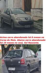 Um dos veículos está abandonado há mais de seis meses na rua Gervásio Araújo de Souza, no Bairro Coroa do Meio, em frente a uma oficina. E o outro há mais de 10 meses na Rua João Leal Soares, Conjunto Sol Nascente.