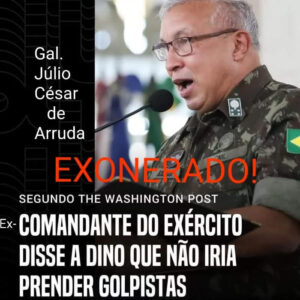 Por outro lado, “in casu concretu”, recém-ocorrido no Brasil, na melhor das hipóteses, a postura do gal. Júlio César de Arruda, ex-Comandante do Exército, se revelou de conivência com os golpistas acampados em frente ao Quartel-General da correspondente Força, em Brasília, DF, donde sairiam, em turba, para promoverem, no fatídico 8 de janeiro do corrente ano (2023), a mais violenta invasão, o mais destrutivo quebra-quebra e a mais indiscriminada e voraz depredação dos edifícios-sedes (Patrimônio Arquitetônico da Humanidade) e dos respectivos acervos e mobiliários, seja históricos, culturais e artísticos, seja contemporâneos, dos três Poderes da República, situados no epicentro político-administrativo da Capital Federal.