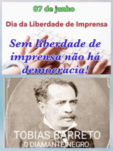 De outro modo, por capricho do destino, num dia como este, em 1839, ou seja, há 184 anos, nascia, na então Vila de Campos, hoje, Tobias Barreto, Sergipe, Tobias Barreto de Menezes, advogado, jurista, professor, filósofo, polemista, orador, musicista, poeta, poliglota e Jornalista.