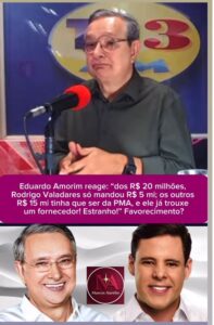 E, segundo Eduardo Amorim, o mais estranho é que os R$ 5 milhões vinham acompanhado de um fornecedor. “ E aí todo mundo achou muito estranho e resolveu seguir o caminho legal que é o processo licitatório”, revelou sugerindo que Marcos Aurélio convide para uma entrevista a secretária Debora Leite para esclarecer tudo.