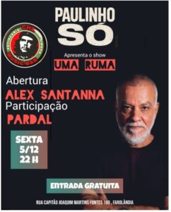 Para Paulinho Só, a música seria um caminho sem volta. Adolescente, fundou a banda Rock da Silva, em colaboração com os irmãos mais velhos. Mais tarde, coroado pelos cabelos brancos, lançou o álbum ‘Na Tormenta’ (2022), em plena pandemia. Agora, quarenta anos depois, ele reúne um punhado das canções compostas ao longo de tanto tempo, entre um extremo e outro, no show ‘Uma Ruma’, que acontece dia 5 de dezembro, a partir das 22 horas, no Che Music Bar, no bairro Farolândia, em Aracaju (SE).
