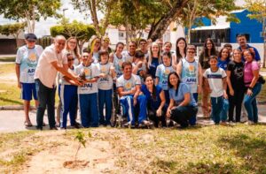 Ação conjunta No município, a atividade reuniu crianças e adolescentes do Núcleo de Cidadania do Adolescente (Nuca) e da Apae, em uma ação conjunta das secretarias municipais da Educação (Semed) e do Meio Ambiente e Ações Climáticas (Semac). Espécies nativas e frutíferas foram plantadas na Praça José Domingos Vieira, conhecida como Praça dos Três Poderes, entre elas a jaqueira, símbolo da identidade lagartense. A vice-prefeita Suely Menezes acompanhou a ação.