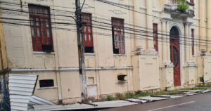 Descaso com o Palácio Ignácio Barbosa A foto foi enviada ontem, 16, por uma guia de turismo que sempre frequenta a Praça Olímpio Campos levando turistas. Como se não bastasse a reforma paralisada há anos do Palácio Ignácio Barbosa, o tapume em torno da fachada caiu. O que ficou: uma cena deplorável que mostra o descaso da gestão com os monumentos históricos.