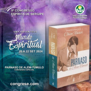Durante 14 episódios postamos os carrosséis com os temas que serão desenvolvidos no *9º Congresso Espírita de Sergipe*, com seus horários e convidados. E no encerramento desta série, a nossa equipe gostaria de apresentar, no 15º episódio, o *PARNASO DE ALÉM-TÚMULO*, um convidado muito especial que estará conosco em muitos momentos do congresso, graças à dedicação de Regina Mercadante.