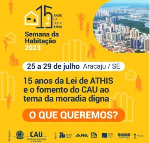 Maior evento do Brasil sobre Melhoria Habitacional acontecerá em Aracaju de 25 a 29 de julho Entre 25 e 29 de julho, Aracaju/SE recebe a Semana da Habitação 2023.Na sua terceira edição, o evento vem se consolidando como espaço de capacitação dos CAU/UF, OSCs e assessorias técnicas para execução e prestação de contas de Termos de Fomento e para fortalecer a rede de atuação de organizações sem fins
