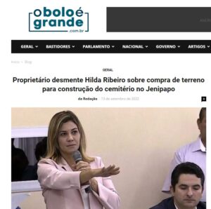 Lagarto: proprietário desmente Hilda Ribeiro sobre compra de terreno para construção do cemitério no Jenipapo II E continua a matéria: Eu não estou mentindo, eu estou falando a verdade, porque não vou assinar sem o dinheiro na conta (…) A hora que ela (Hilda Ribeiro) quiser a gente assina o documento, do contrário, ela que procure outro terreno (…)”, disse o proprietário do espaço em áudio. A situação revoltou ainda mais os moradores do povoado, que estão na bronca com a gestão municipal e o grupo dos Ribeiro. A comissão de moradores que trata do assunto emitiu uma nota confirmando que não foi informada de compra alguma e também não viu nada a respeito no Portal da Transparência. Leia toda nota e o áudio do proprietário do terreno aqui.