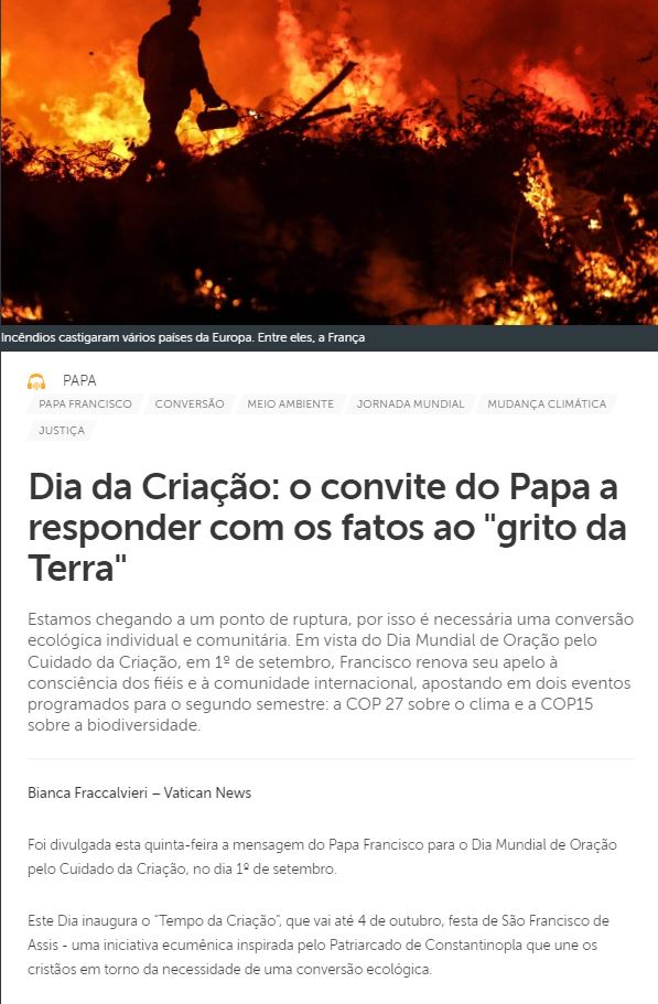 Ouça a reportagem: https://www.vaticannews.va/pt/papa/news/2022-07/papa-francisco-dia-criacao-responder-com-fatos-ao-grito-da-terra.html