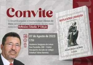 Lançamento do livro Reflexões Cidadãs, do desembargador e imortal, Edson Ulisses de Melo (3ª Edição revista e atualizada), hoje, 07, às 17h na Academia Sergipana de Letras.