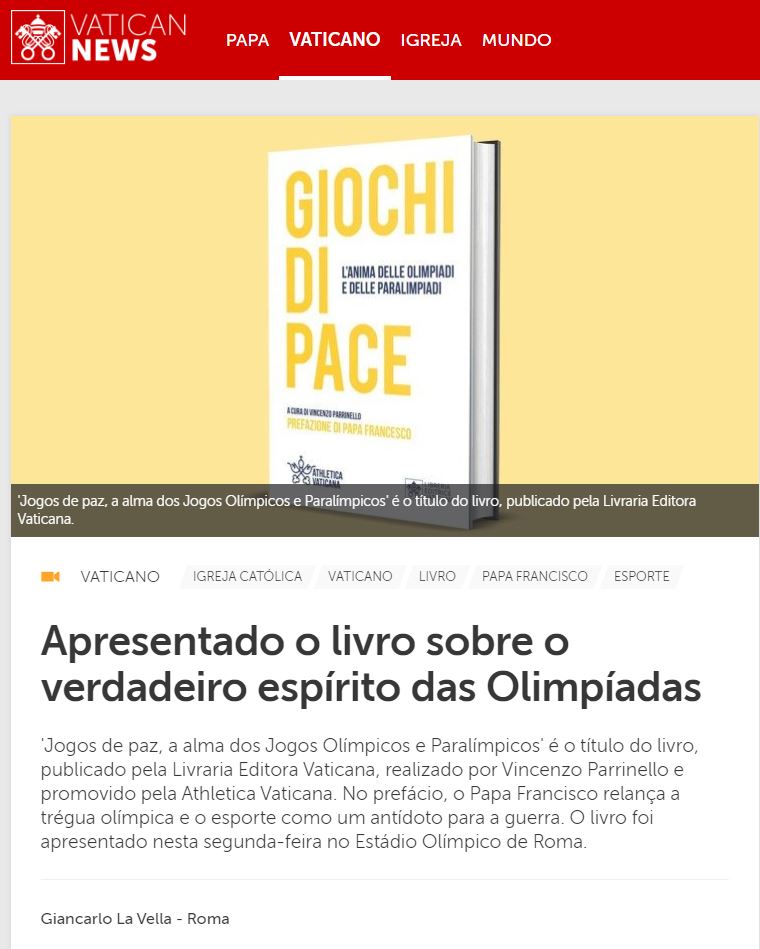 “Pensando no valor da trégua olímpica, minha esperança é que o esporte possa concretamente construir pontes, derrubar barreiras, promover relações de paz”. Apenas algumas palavras são suficientes para que o Papa Francisco encontre a deixa eficaz e adequada para fazer da atividade agonística, em qualquer nível, um importante impulso para olhar, por meio do esporte, para um futuro de diálogo e paz. Isso e muito mais no volume ‘Jogos de paz, a alma dos Jogos Olímpicos e Paralímpicos’, publicado pela Livraria Editora Vaticana, realizado por Vincenzo Parrinello e promovido pela Athletica Vaticana. O prefácio do Papa Francisco, uma apresentação em grande estilo deste livro, traça as linhas fundamentais para entender bem e dar o significado correto às 85 histórias de atletas olímpicos e paraolímpicos contidas nas páginas de uma espécie de guia, para entender melhor também os principais eventos esportivos que vivemos neste 2024 e que viveremos nas próximas semanas. Todas as modalidades ofereceram espetáculo e excelência. Aqui: https://www.vaticannews.va/pt/vaticano/news/2024-06/joguemos-fazer-paz-apresentado-livro-sobre-verdadeiro-olimpiadas.html
