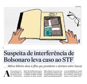 moeda para agradar a base evangélica num escândalo sem precedentes de recursos do Fundo Nacional de Desenvolvimento da Educação (FNDE) à prefeituras em troca de propinas solicitadas e recolhidas por pastores lobistas. Após a prisão do ministro, Bolsonaro tirou a cara que tinha colocado “no fogo” e disse que cada um responde por seus atos.