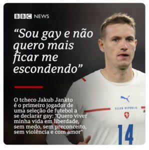 Outros jogadores de futebol já haviam se declarado gays antes, mas Jakub foi o primeiro no mundo a fazê-lo como parte da Seleção principal de seu país, em fevereiro deste ano #ArquivoBBC