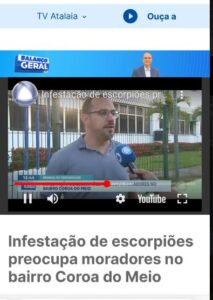 TV Atalaia sempre sintonizada com a comunidade mostra infestação de escorpiões que preocupa moradores no bairro Coroa do Meio Ontem, 22, no Balanço Geral Sergipe, da TV Atalaia foi mostrada a preocupação de moradores da Rua Gervásio Araújo de Sousa, no Bairro Coroa do Meio com a infestação de escorpiões principalmente de uma residência abandonada com o acúmulo de lixo e materiais, inclusive com moradores sendo picados. A reportagem entrevistou o doutor em saúde público, Bruno Araújo que reforçou a necessidade de uma solução para o problema já que a picada de escorpiões, principalmente em idosos pode levar a morte. Procurada a Secretaria de Saúde de Aracaju informou que através do Centro de Zoonoses enviará agentes de endemias para apurar a denúncia e que por se tratar de um imóvel particular possivelmente abandonado serão necessários alguns cuidados e a devida apuração para avaliar as medidas cabíveis inclusive acionar a Emsurb para remoção de possíveis focos. O apresentador do programa, Fábio Henrique, alertou que irá acompanhar o desenrolar desta denúncia. Aqui toda a matéria: