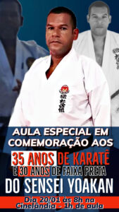 Aula Especial em Comemoração aos 35 anos de karatê e 30 anos de faixa preta do Sensei Yoakan. Sábado, 20, às 8h, na Cinelândia, Atalaia.