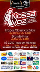 Nossa Voz: Encontro de Cantores (as) de Porto da Folha E no município de Porto da Folha a comunidade está ansiosa para o início do “Nossa Voz” Encontro de Cantores (as) uma realização da Villa Mix e a TV AN, através do professor Jota. O encontro terá etapas classificatórias nos dias 09 e 19 deste mês. E a grande final em 30 de julho. O Encontro conseguiu o apoio de diversos segmentos do município já que tem o intuito não só de estímulo a cultura, mas também de integrar mais ainda toda a comunidade de Porto da Folha. O evento conta também com o apoio cultural da Sertão FM, a rádio do povo buraqueiro.