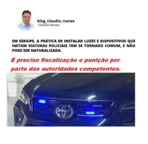 Simulacro de Giroflex em Sergipe – É preciso fiscalização e punição por parte das autoridades competentes Em Sergipe, a prática de instalar luzes e dispositivos que imitam viaturas policiais tem se tornado comum, e não pode ser naturalizada. O uso de iluminação ou equipamento não autorizado, especialmente com potencial de confundir outros condutores, viola o art. 230, XII, do CTB. A depender da intenção, sobretudo se houver simulação de autoridade, a conduta pode ainda se enquadrar na Lei de Contravenções Penais, ou até caracterizar crime. É preciso fiscalização e punição por parte das autoridades competentes.