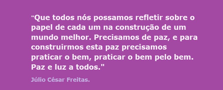 Júlio César Freitas – Nossa expectativa é de poder levar à sociedade uma reflexão sobre a necessidade de sermos fraternos. Diante