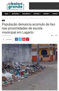 População denuncia acúmulo de lixo nas proximidades de escola municipal em Lagarto Deu no site “O Bolo é Grande”: A indignação se espalhou pela comunidade de Lagarto devido à persistência de acúmulo de lixo próximo à Escola Municipal José Antônio dos Santos, no bairro Loiola. Um vídeo, gravado por um morador, nesta segunda-feira, 28, ganhou destaque nas redes sociais e no WhatsApp, expondo a situação que persiste há meses e gerando um clamor público por ação imediata. O vídeo mostra a extensão do problema, com montanhas de lixo se acumulando ao lado da escola, deixando um cenário de abandono. Moradores locais expressaram sua frustração, alegando que a prefeitura de Lagarto falhou em resolver o problema, principalmente na coleta de lixo, que é um problema generalizado no município. Toda matéria com o vídeo aqui.