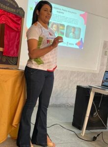 Linguagem escrita O Módulo l foi iniciado ontem, 29, ministrado pela formadora Luana Santana, que trouxe como tema geral a linguagem escrita voltada para os alunos do ensino infantil. “O objetivo foi dialogar sobre o sistema de apropriação da escrita na Educação Infantil e discutir sobre a relação entre a literatura e as competências socioemocionais, assim como, propor estratégias de mediação de leitura e formação do leitor literário”, comenta a formadora.