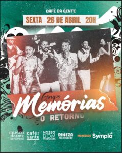 O Café da Gente Sergipana tem a honra de receber amanhã, dia 26 de abril, às 20h, um dos mais aclamados grupos musicais dos anos 90: o Grupo Memórias. Com um histórico repleto de sucessos e prêmios, o Grupo Memórias retorna aos palcos para uma apresentação exclusiva que promete reavivar as memórias e emocionar o público presente.