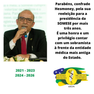Médico Hesmoney reeleito para a Sociedade Médica de Sergipe – Somese. Uma homenagem da Sociedade Brasileira de Médicos Escritores/SE.