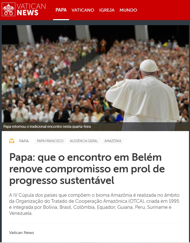 Ouça e compartilhe: https://www.vaticannews.va/pt/papa/news/2023-08/papa-francisco-audiencia-geral-belem-encontro-paises-amazonia.html