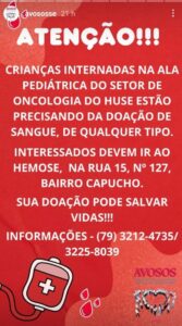 CRIANÇAS INTERNADAS NA ALA PEDIÁTRICA DO SETOR DE ONCOLOGIA DO HUSE, ESTÃO PRECISANDO DE DOAÇÃO DE SANGUE DE QUALQUER TIPO SANGUÍNEO – http://espacomilitar.com/2024/03/criancas-internadas-na-ala-pediatrica.html