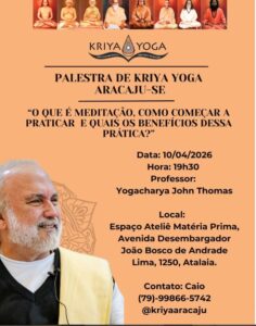 No dia 10 de abril, teremos em Aracaju uma palestra especial de Kriya Yoga com o Yogacharya John Thomas, abordando de forma clara e acessível: