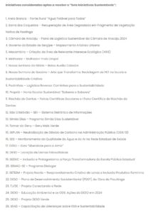 Boas práticas Para a presidente do TCE, conselheira Susana Azevedo, a iniciativa reforça o papel dos tribunais de contas como agentes indutores de boas práticas na gestão pública. “Com o Selo Iniciativas Sustentáveis, buscamos valorizar e dar visibilidade a ações que contribuem, de forma concreta, para o desenvolvimento sustentável de Sergipe. Queremos estimular gestores a pensar e agir com responsabilidade socioambiental, promovendo uma administração pública mais eficiente e consciente”, destaca a conselheira.Os contemplados poderão utilizar o selo em seus materiais institucionais, além de receber certificado de reconhecimento. Confira no print abaixo a lista das iniciativas consideradas aptas a receber o Selo Iniciativas Sustentáveis: