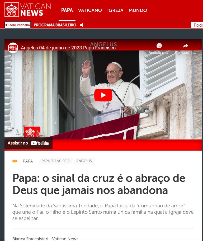Ouça a reportagem completa com a voz do Papa Francisco: https://www.vaticannews.va/pt/papa/news/2023-06/papa-francisco-angelus-santissima-trindade.html