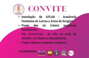 Hoje, 28: Academia Feminina de Letras empossa membras fundadoras Do Acadêmico ALCS, Eduardo Almeida: A Educadora Cris Souza informa e convida todos a comparecerem à instalação da mais nova Academia Literária do nosso estado, a AFLAS-Academia Feminina de Letras e Artes de Sergipe, que será realizada nesta sexta-feira, 28, às 19h, na sede da AEASE (em frente ao Parque da Sementeira). Na ocasião serão empossadas as 20 membras fundadoras da Academia. A educadora Cris Souza é uma abnegada ativista cultural já tendo inclusive fundado outras academias literárias à exemplo da ALES-Academia de Letras Estudantil de Sergipe e a ALCS-Academia Lítero Cultural de Sergipe, entre outros projetos educacionais para crianças e adultos. ”Literalmente”, é gente que faz!
