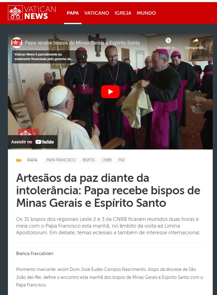 Os regionais Leste 2 e 3 da Conferência Nacional dos Bispos do Brasil estão em visita ad Limina no Vaticano e nesta quinta-feira (20/10) puderam falar e ouvir o Santo Padre. Leia e ouça aqui: