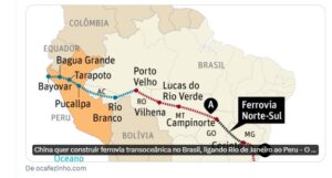 China quer construir ferrovia transoceânica no Brasil, ligando Rio de Janeiro ao Peru