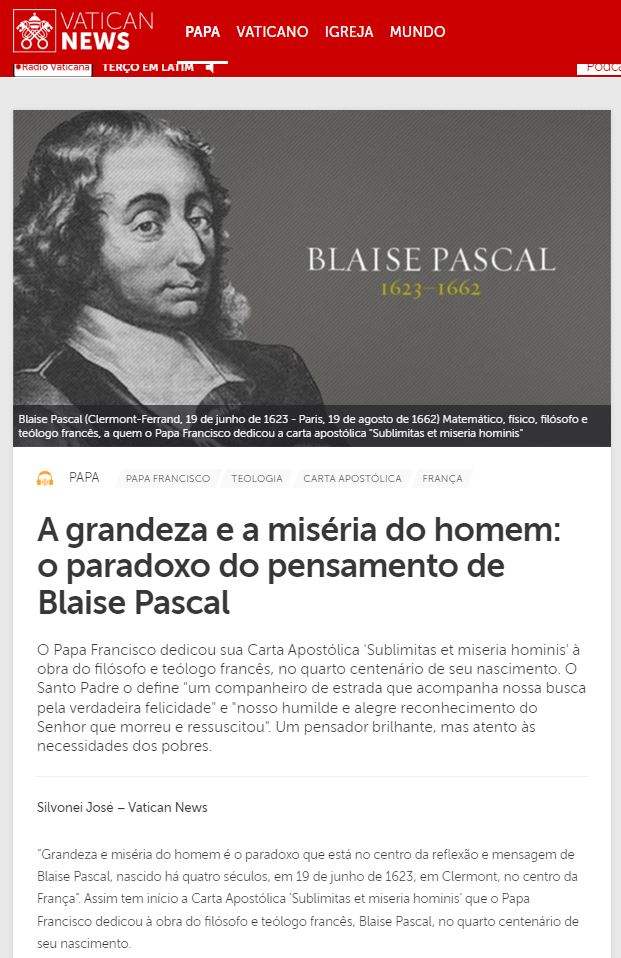 Ouça e compartilhe: https://www.vaticannews.va/pt/papa/news/2023-06/grandeza-miseria-homem-paradoxo-pensamento-pascal.html