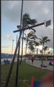 Alerta a Emsurb: situação de alguns postes e coqueiros da Orla de Atalaia pode causar uma tragédia O blog recebeu fotos de frequentadores da orla de Atalaia mostrando a situação de alguns postes e coqueiros. Tem um poste (foto acima) que está uma semana amarrado no chamado Mundo da Criança. A foto mostra a proximidade do poste que está amarrado e o local onde as crianças brincam. É melhor prevenir para não ocorrer uma tragédia, fazendo um levantamento de todos os postes e coqueiros deteriorados como o coqueiro da foto acima que quando venta muito assusta a quem está próximo porque tem uma parte bem fina conforme a seta indicando.