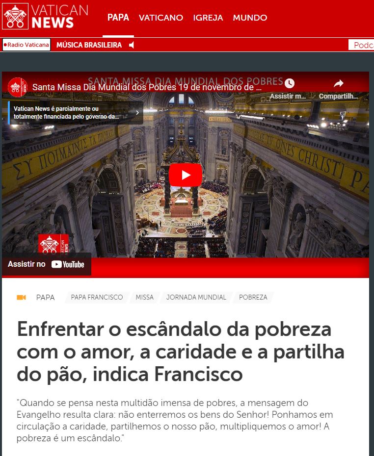 PARA O VII DIA MUNDIAL DOS POBRES – (XXXIII Domingo do Tempo Comum – 19 de novembro de 2023) Aqui: