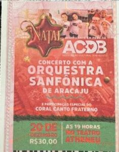 Dia 20 de dezembro, às 19h, no Teatro Atheneu: Concerto com a Orquestra Sanfônica de Aracaju, com as participações especiais dos corais “Canto Fraterno” e “Cantavosos”. Ingressos apenas R$ 30,00. Projeto ACDB – Associação Cultural Dom Bosco – Desde 2012 a ACDB acolhe crianças carentes e oferece reforço escolar, atividades culturais, educação ética e muito amor. Participe, veja as ações e como doar aqui: https://www.instagram.com/projetoacdb/