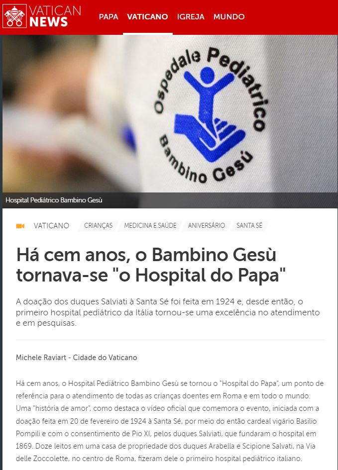 Ouça e compartilhe: https://www.vaticannews.va/pt/vaticano/news/2024-02/cem-anos-da-transferencia-do-hospital-bambino-gesu-a-santa-se.html