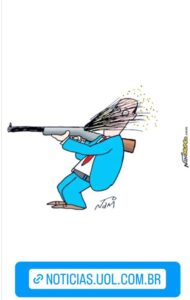 A pregação que está nas redes, o ataque virulento aos militares e a cerimônia que mistura casamento e golpismo, exaltada por Bia Kicis, servem como assinatura na obra de 8 de janeiro. E não posso deixar de exaltar a decisão: fiquem mesmo longe do 7 de Setembro. A data não merece a pestilência do golpismo. Ilustração: Nani/Nanihumor.com @nanihumor