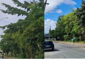 Aracaju: Os moradores da Rua Martins Barros, situada no Conjunto Sol Nascente, agradecem a Emsurb pela podagem das árvores. Fotos de antes e depois da poda.