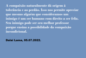 www.twitter.com/DalaiLama Compassion naturally gives rise to tolerance and forgiveness. It allows us to appreciate that even someone we think of as an enemy is a human being with a right to be happy. Your enemy can be your best teacher because he or she teaches the possibility of unconditional compassion.