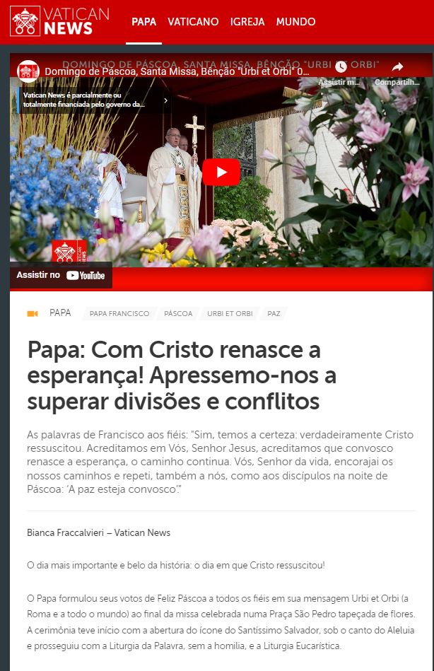 Ouça a reportagem completa com a voz do Papa Francisco: